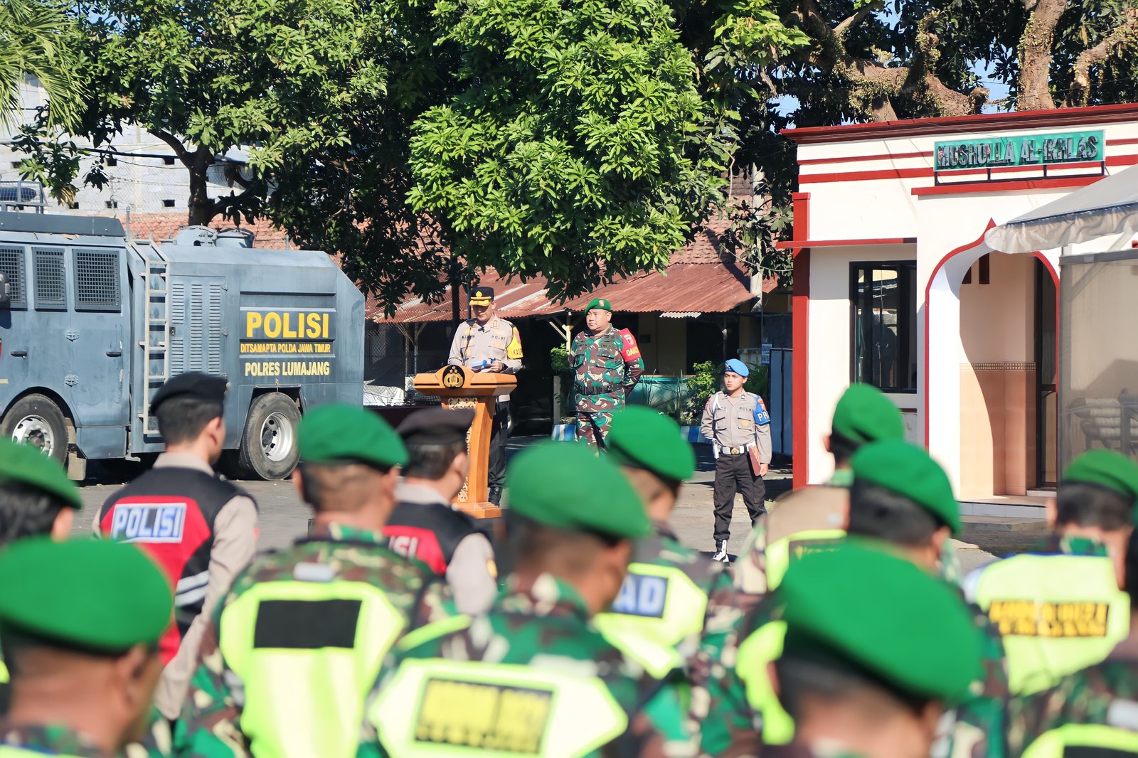 Lumajang, Dandim 0821/Lumajang Letkol Inf Ronny Wijaya Koesuma bersama Kapolres Lumajang AKBP Mohammad Zainur Rofik, pimpin Apel gelar pasukan operasi patuh semeru 2024 dengan tema “Tertib Berlalu Lintas Demi Terwujudnya Indonesia Emas” bertempat di Lapangan Samsat Lumajang, Senin (15/7/2024).