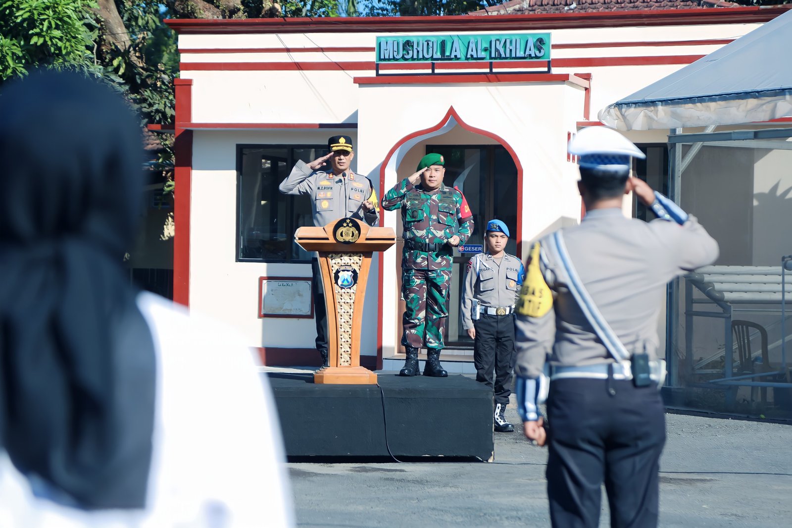 Lumajang, Dandim 0821/Lumajang Letkol Inf Ronny Wijaya Koesuma bersama Kapolres Lumajang AKBP Mohammad Zainur Rofik, pimpin Apel gelar pasukan operasi patuh semeru 2024 dengan tema “Tertib Berlalu Lintas Demi Terwujudnya Indonesia Emas” bertempat di Lapangan Samsat Lumajang, Senin (15/7/2024).