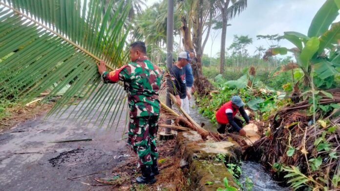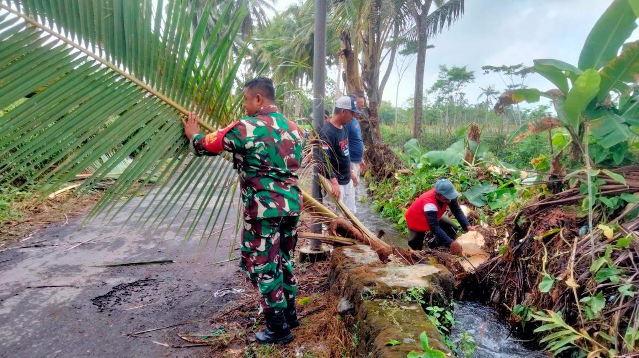 Kegiatan tersebut dilakukan sebagai upaya menjaga kebersihan lingkungan sekaligus memperlancar akses transportasi antarwilayah. Dengan menggunakan alat sederhana seperti cangkul, sabit, dan sapu lidi, Babinsa bersama warga bergotong royong membersihkan rumput liar serta sampah yang menumpuk di bahu jalan.