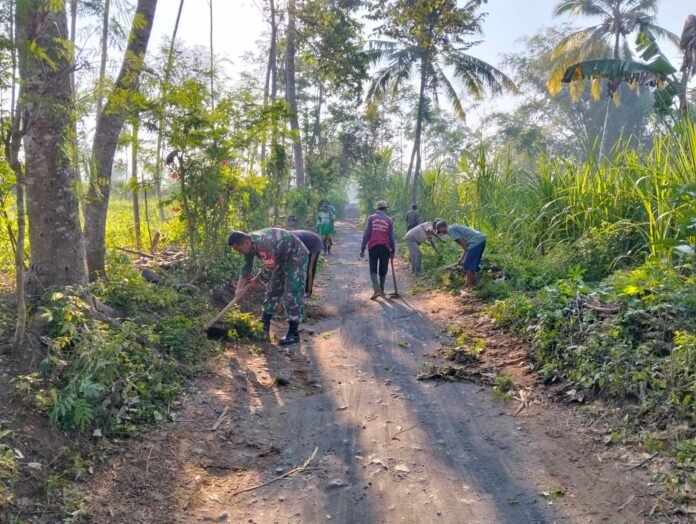 Babinsa Bago Ajak Warga Gotong Royong Bersihkan Jalan Alternatif Sepanjang 300 Meter