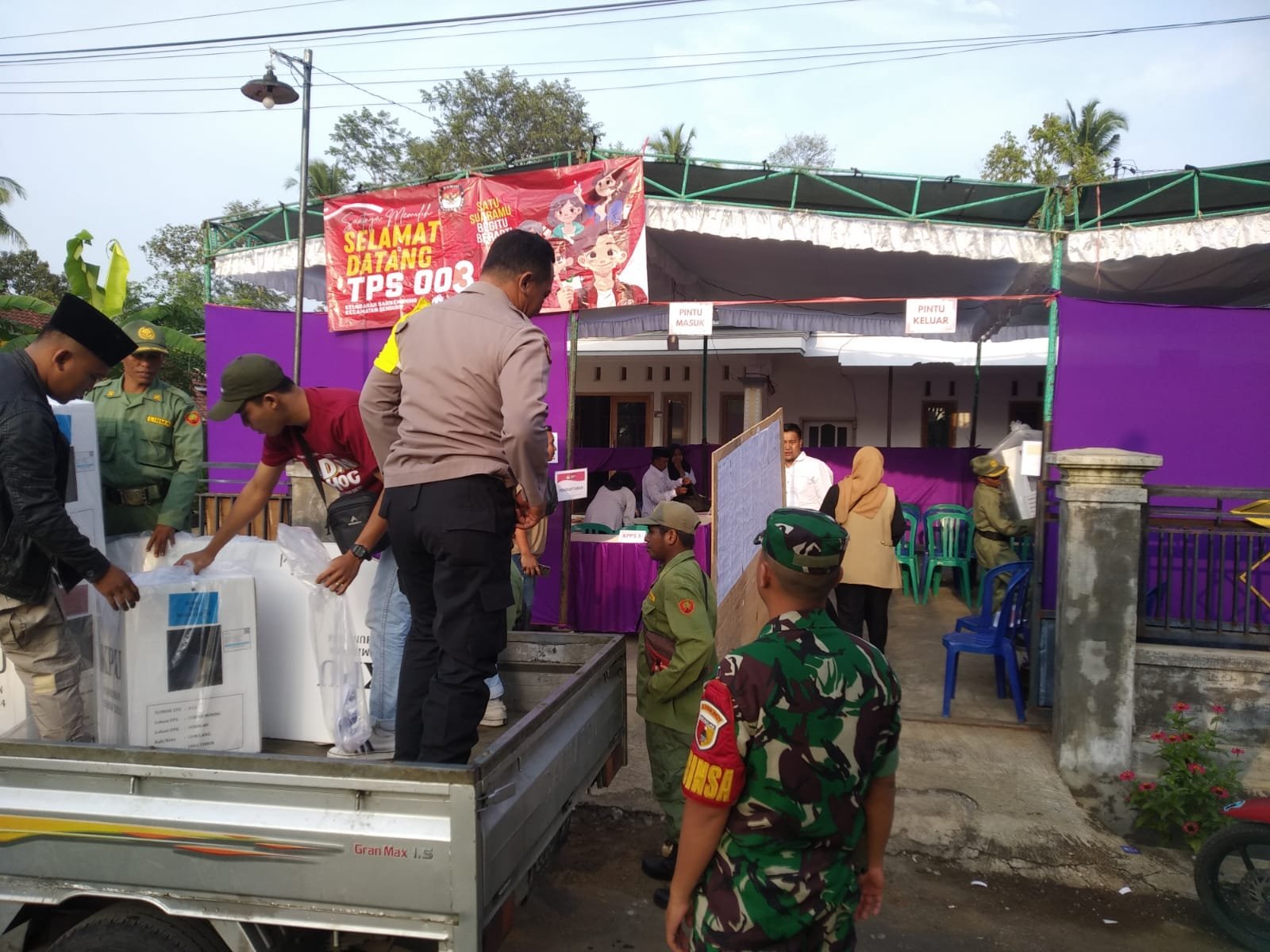 Babinsa dan Bhabinkamtibmas Sarikemuning Kawal Distribusi Kotak Suara ke TPS