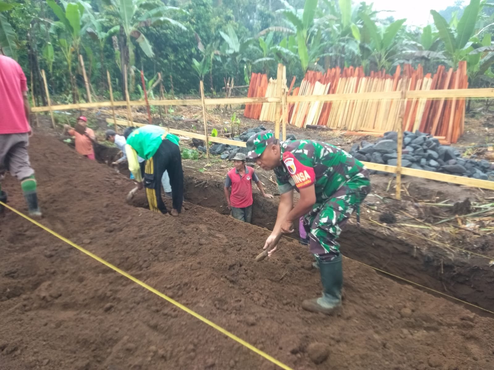 Kepala Dusun Carangkuning, Ahmad Saiful Rijal, menyampaikan apresiasinya atas bantuan dan partisipasi aktif dari Babinsa dan warga dalam kegiatan penggalian tanah untuk rencana pondasi Masjid.