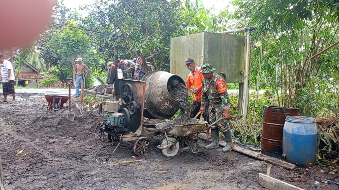 Lumajang – Komitmen TNI dalam mendukung percepatan pembangunan di wilayah pedesaan kembali ditunjukkan melalui peran aktif Babinsa Jatiroto. Babinsa Jatiroto Koramil 0821-12/Jatiroto, Serda Agus Budi Santoso, melaksanakan pendampingan pembangunan infrastruktur jalan rabat beton di Dusun Kotokan RT 002 RW 008, Desa Jatiroto, Kecamatan Jatiroto, Kabupaten Lumajang, Jawa Timur, pada Minggu (4/1/2026).