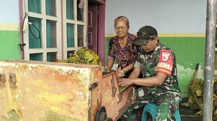 Lumajang, Dalam rangka mempererat hubungan dengan masyarakat sekaligus memberikan pendampingan di bidang pertanian, Babinsa Kaliwungu Koramil 0821-10/Tempeh, Pelda Zainal Abidin, melaksanakan silaturahmi ke salah satu petani tembakau anggota kelompok tani Eka Tani II di Dusun Karangsari RT 006 RW 002 Desa Kaliwungu, Kecamatan Tempeh, Kabupaten Lumajang, Jawa Timur. Minggu (5/10/2025).