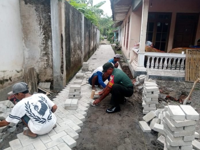 Lumajang, Dalam rangka mendukung program pemerintah desa untuk meningkatkan infrastruktur di wilayahnya, Babinsa Kedungrejo Koramil 0821/16 Rowokangkung Sertu Stepanus Thenu, turut aktif dalam pendampingan kegiatan program pavingisasi yang dilaksanakan pemerintah desa di Dusun Pondok Kobong RT 006 RW 003 Desa Kedungrejo Kecamatan Rowokangkung Kabupaten Lumajang, Jawa Timur, Rabu (17/4/2024).