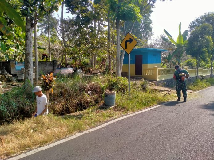 Babinsa Kertosari Bersama Warga Melaksanakan Kerja Bakti Pembersihan Jalan di Dusun Dadapan