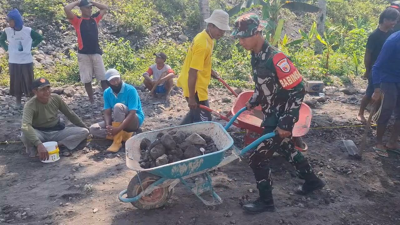 Babinsa Kloposawit Bangun Kegotongroyongan Warga dalam Perbaikan Jalan Desa