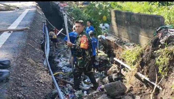 Lumajang, Babinsa Madurejo Koramil 0821/08 Pasirian, Serda Tri Tunggal Jaya, mengawal kegiatan pemasangan pipa air bersih PDAM di Dusun Krajan, RT 05 RW 01, Desa Madurejo, Kecamatan Pasirian, Kabupaten Lumajang, Jawa Timur, pada Sabtu (6/7/2024).