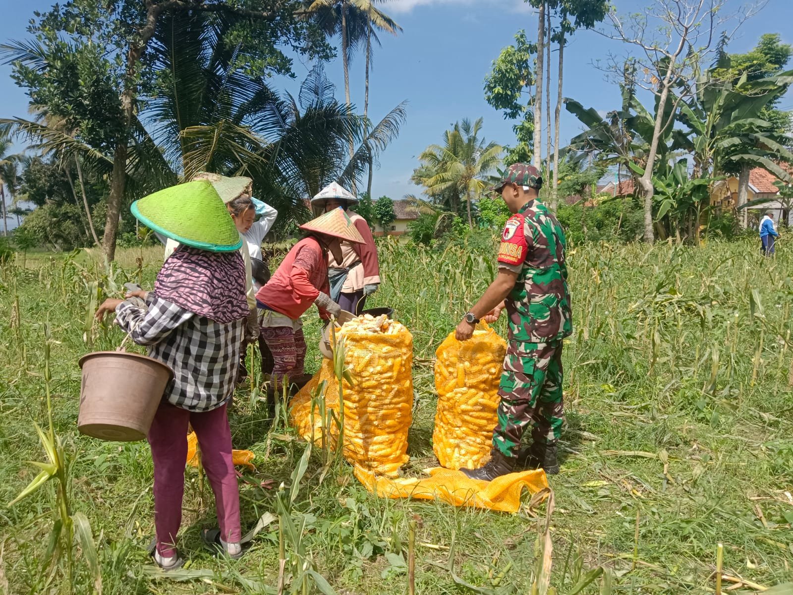 Dalam kegiatan tersebut, Serda Amil Fahrudin turun langsung mendampingi Abdul Saimin, anggota kelompok tani Harapan Kita, yang memanen jagung dari lahan seluas 0,25 hektar dengan hasil panen mencapai 500 kg. Pendampingan tersebut bertujuan untuk memastikan kualitas komoditi jagung yang dihasilkan sesuai dengan harapan.