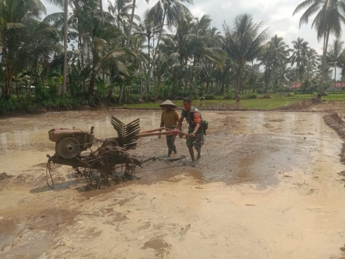 Disela kegiatannya Serda Ely yang turut membantu pengolahan lahan bersama para petani menyampaikan, pendampingan tersebut merupakan bentuk dukungan kepada petani dengan turun langsung pengolahandi lahan seluas 0,2 hektare yang dimiliki oleh Tulam.
