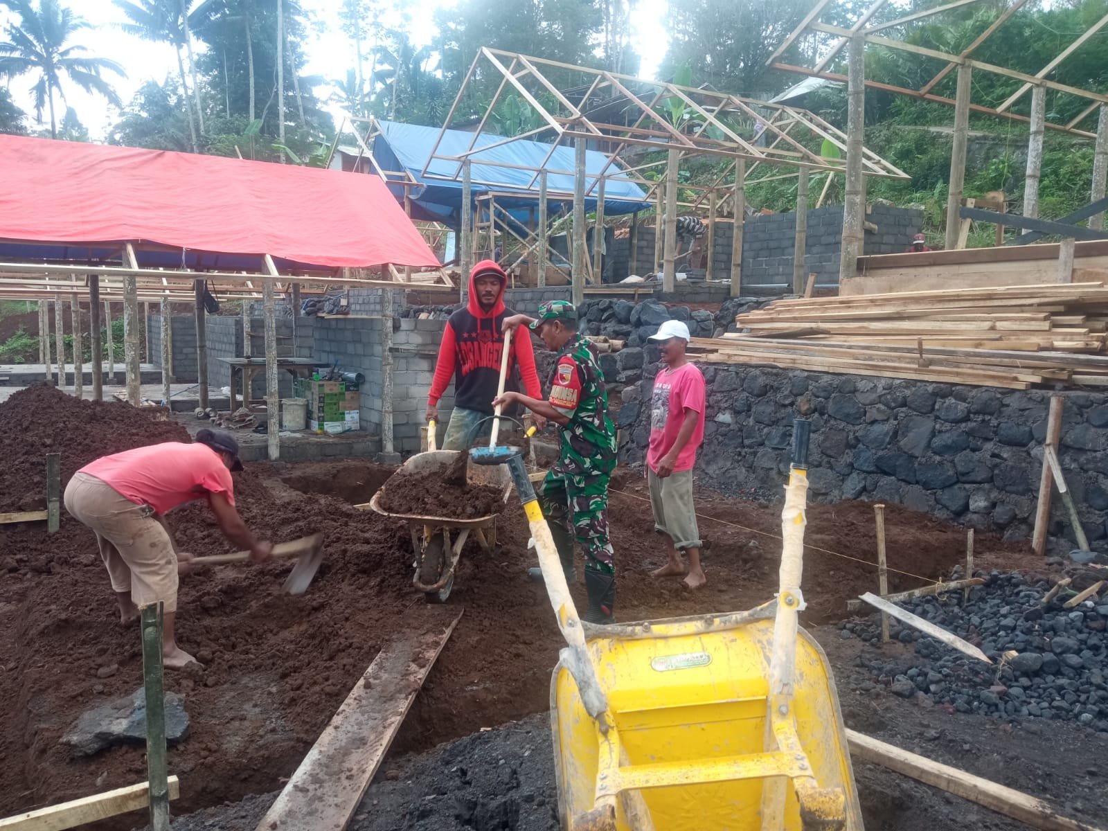 Dalam suasana yang penuh kehangatan dan gotong royong, Serka Sutikno bersama warga sekitar bahu-membahu menyelesaikan berbagai pekerjaan fisik yang dibutuhkan dalam pembangunan rumah tersebut. Kegiatan itu tidak hanya sebatas membantu secara fisik, tetapi juga sebagai bentuk komunikasi dan pendekatan sosial yang efektif antara aparat TNI dengan masyarakat.