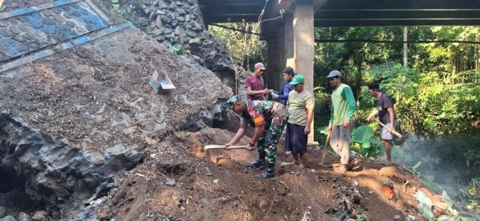 “Dengan pembersihan material bangunan batas jembatan secara gotong-royong ini, sebagai upaya kepala desa atas usulan kepala dusun dan warga, untuk dapat mempercepat pengerjaan renovasi, sehingga masyarakat yang melintasi jalan maupun jembatan ini tidak khawatir untuk dilalui,” kata Sertu Farik Fandianto.