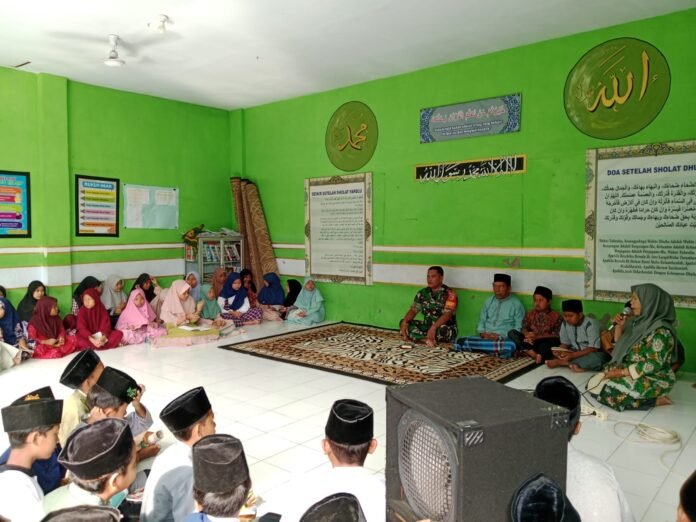 Lumajang – Babinsa Pulo Koramil 0821-10/Tempeh, Serda Andrianto, memberikan pencerahan tentang bahaya kenakalan remaja di lingkungan pendidikan dalam kegiatan Pondok Ramadhan yang digelar di MI Fajrul Islam 1 Desa Pulo, Kecamatan Tempeh, Kabupaten Lumajang, Selasa (24/2/2026) malam.