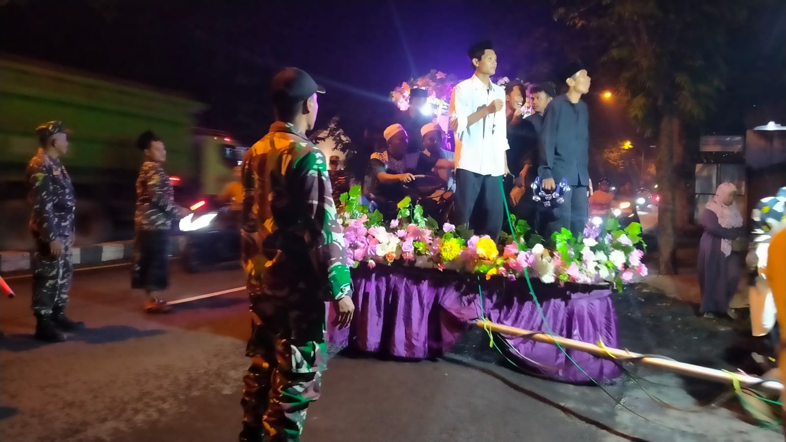 Lumajang, Dalam rangka menyambut datangnya bulan suci Ramadan, Babinsa Selokbesuki Koramil 0821-02/Sukodono Serda Hery Wahyudi turut serta dalam pengamanan dan pengawalan pawai ta’aruf yang diselenggarakan oleh TPQ Mamba’ul Ulum Desa Selokbesuki, Kecamatan Sukodono, Kabupaten Lumajang, pada Jumat (28/2/2025) malam.