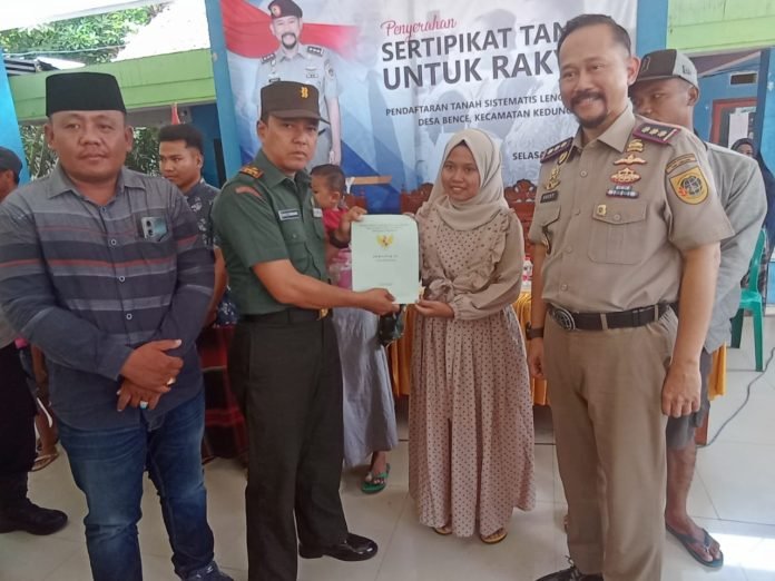 Saat dikonfirmasi tim Pendim Danposramil Kedungjajang Peltu Cahyo Purnomo, mengatakan dukungan terhadap program PTSL, yang dianggapnya memberikan kepastian hukum dan perlindungan atas hak kepemilikan tanah secara pasti kepada masyarakat. Acara tersebut menjadi momen penting karena Desa Bence berhasil menyelesaikan pengurusan sebanyak 400 sertifikat melalui Program PTSL (Pendaftaran Tanah Sistematis Lengkap).