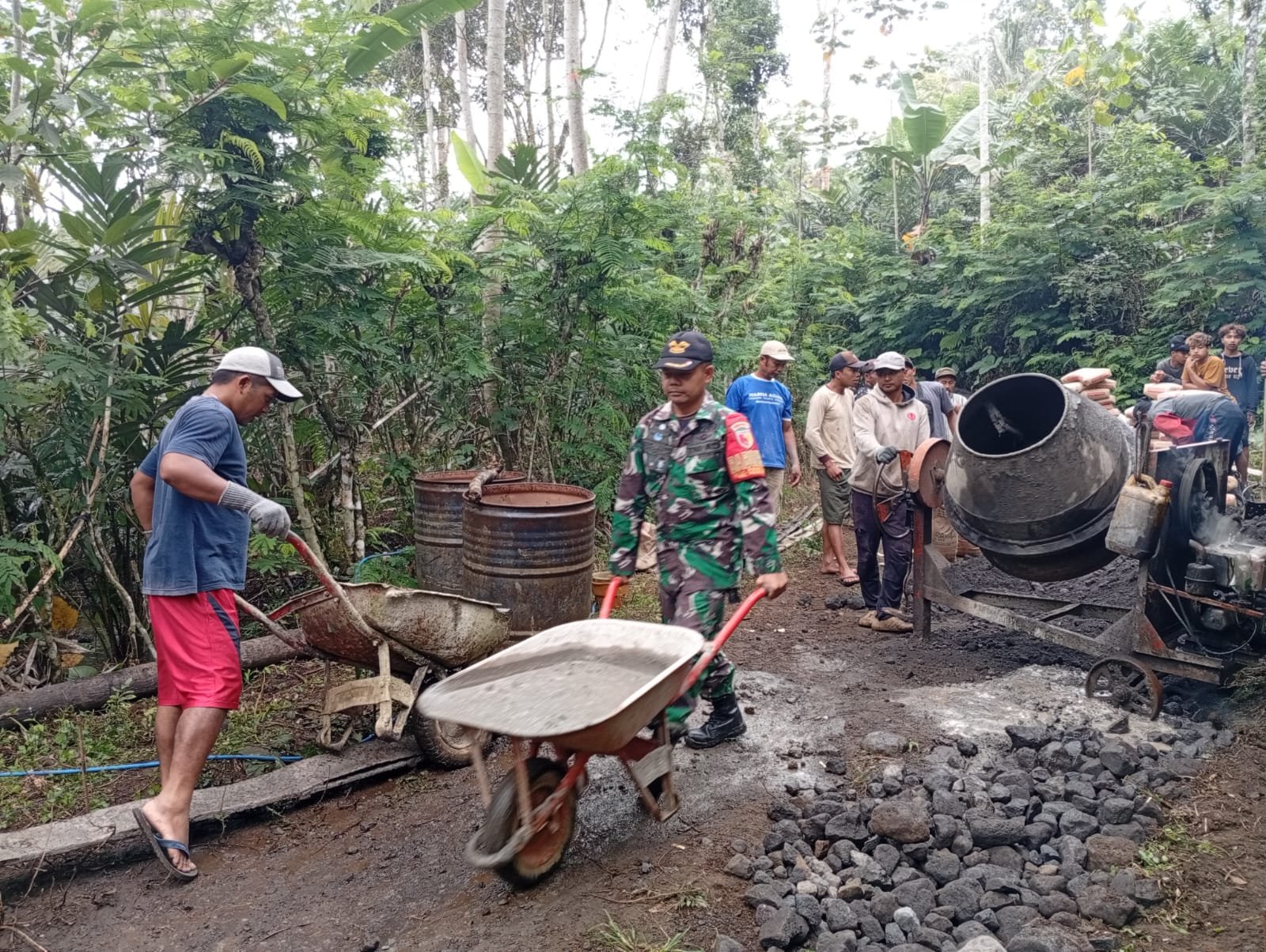 Kegiatan pengecoran jalan sepanjang sekitar 250 meter tersebut dilakukan secara gotong royong oleh warga bersama perangkat desa dan aparat TNI. Pembangunan infrastruktur jalan ini dinilai sangat penting karena menjadi akses utama masyarakat antar dusun, sekaligus mendukung kelancaran aktivitas ekonomi warga setempat.