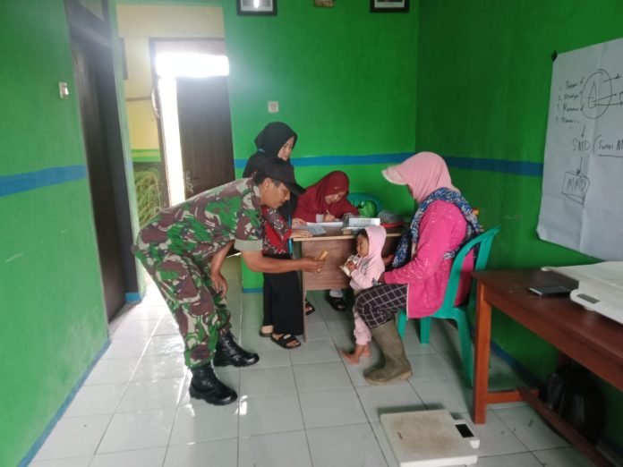 Lumajang, Dalam upaya mendukung peningkatan pelayanan kesehatan masyarakat di wilayah binaan, Babinsa Argosari Koramil 0821-03/Senduro, Sertu Edi Kuswanto, melaksanakan pendampingan kegiatan Pos Pelayanan Terpadu (Posyandu) Mawar Merah yang berlangsung di Dusun Gedok RT 001 RW 005, Desa Argosari, Kecamatan Senduro, Kabupaten Lumajang, Jawa Timur, Minggu (13/4/2025).