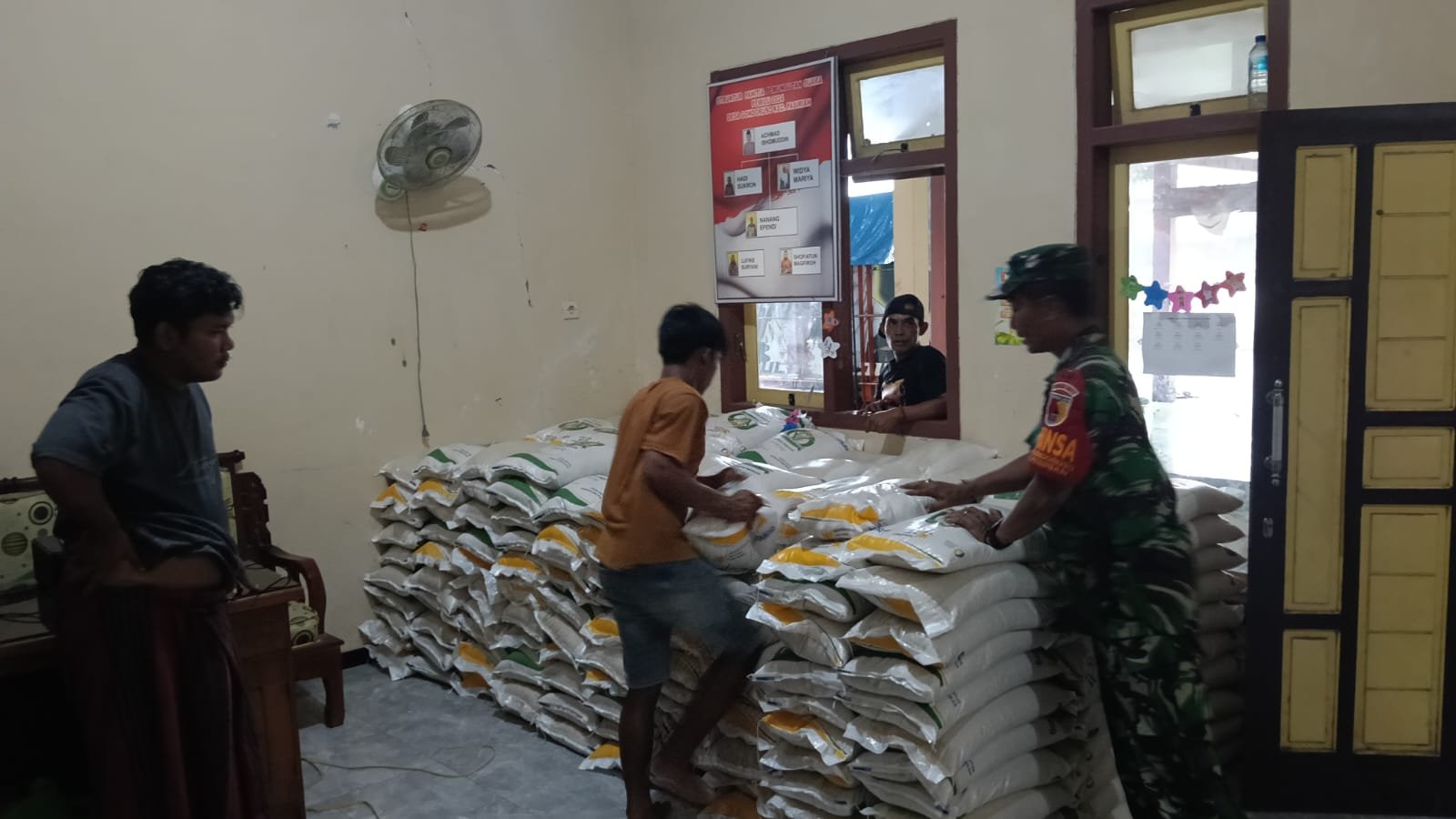 “Kami selalu siap mendampingi dan membantu kegiatan sosial di desa binaan. Hari ini kami membantu proses penurunan dan pengangkutan beras ke dalam balai desa agar besok penyaluran kepada masyarakat bisa berjalan tertib dan lancar,” ujar Sertu Firdaus.
