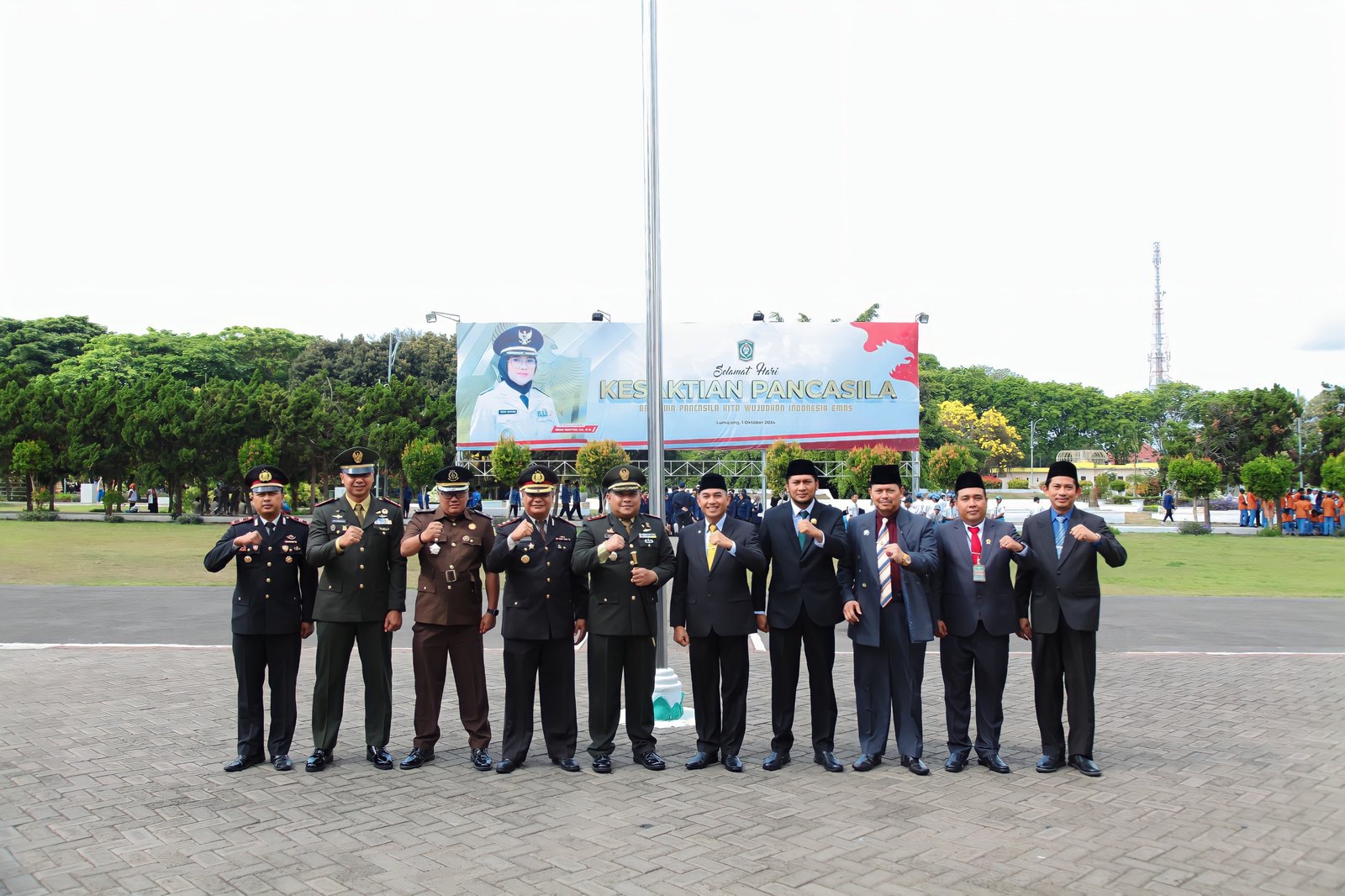 Lumajang, Komandan Kodim 0821/Lumajang Letkol Inf Ronny Wijaya Koesuma memimpin upacara peringatan Hari Kesaktian Pancasila dengan tema “Bersama Pancasila Kita Wujudkan Indonesia Emas” yang digelar di Alun-alun Lumajang Jawa Timur, Selasa(1/10/2024).