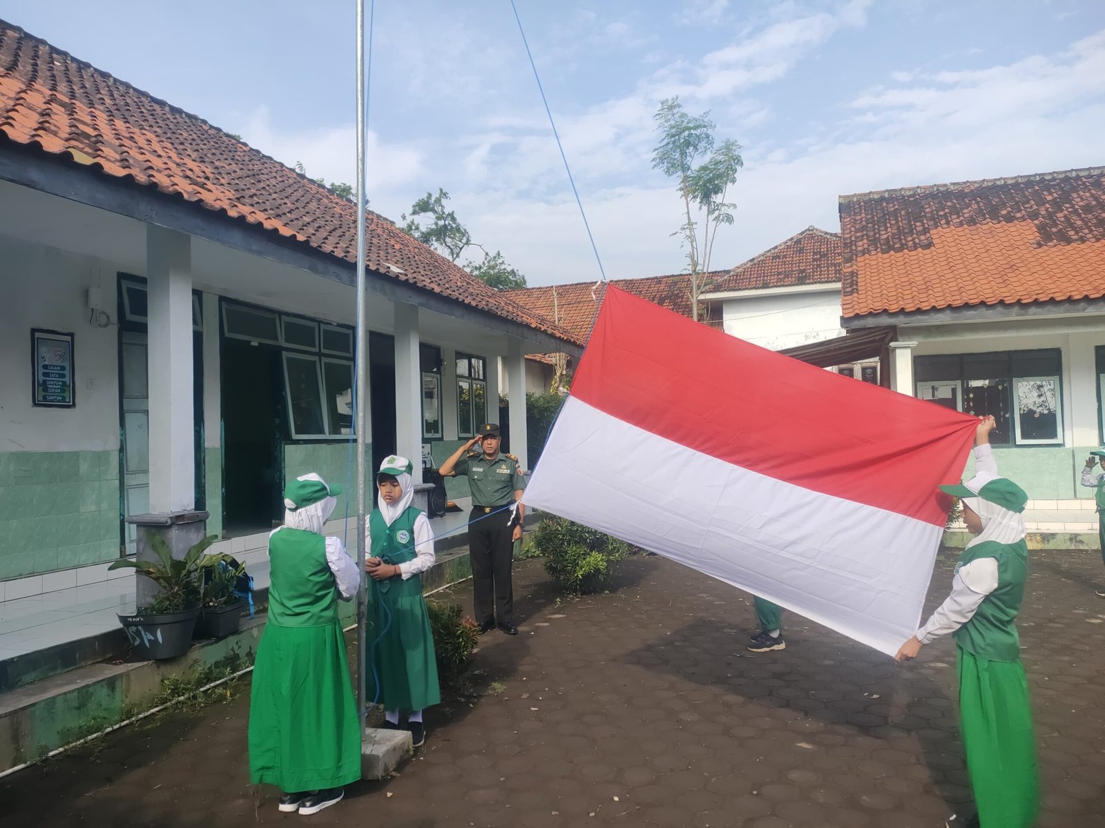 Upacara yang dimulai pukul 07.00 WIB tersebut berlangsung khidmat dan tertib, diikuti oleh Kepala Sekolah, dewan guru, personel Posramil 0821-05/Kedungjajang, serta seluruh siswa-siswi kelas 1 hingga kelas 6 dengan jumlah sekitar 38 orang.