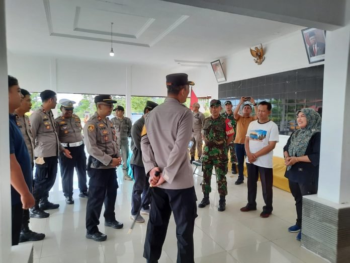 Lumajang, Danramil 0821/03 Senduro Kapten Inf Bambang Mulud, dampingi Forkopimcam Senduro menerima kunjungan Kapolres Lumajang AKBP Mohammad Zainur Rofik,  di dampingi beberapa Pejabat Utama (PJU) Polres Lumajang melakukan pemantauan terhadap Gudang Penyimpanan logistik Pemilu di PPK Kecamatan Senduro kabupaten Lumajang, Jawa Timur, Sabtu (17/2/2024).