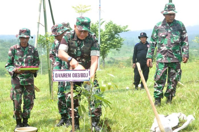 Lumajang – Dalam upaya mendukung program unggulan Kepala Staf Angkatan Darat (Kasad) tahun 2024, Korem 083/Bdj bersama Forkopimda Lumajang melaksanakan penanaman bibit pohon mahoni dan trembesi sebanyak 2000 bibit, di kawasan Bumi Perkemahan Glagah Arum, Desa Kandangtepus, Kecamatan Senduro, Kabupaten Lumajang. Kegiatan ini mengusung tema “TNI AD bersama rakyat bersatu dengan alam untuk NKRI” Sabtu (16/11/2024).