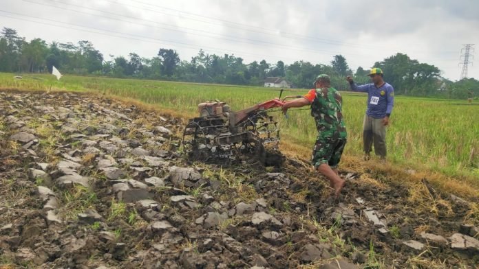 Lumajang, Sebagai upaya dalam mendukung percepatan pengolahan lahan guna meningkatkan program ketahanan pangan di tingkat lokal, Babinsa Jatiroto Koramil 0821/12 Jatiroto Serda Ahmad Agus Budi Santoso, melaksanakan kegiatan pendampingan pengolahan lahan pertanian kelompok tani “Tani Maju”, di Dusun Curahwedi Desa Jatiroto Kecamatan Jatiroto Kabupaten Lumajang, Jawa Timur, pada Kamis (16/5/2024).
