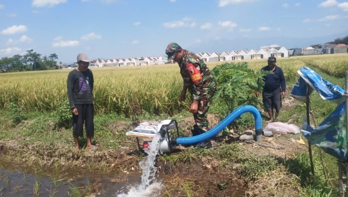 Lumajang, Dalam upaya mendukung ketahanan pangan dan meningkatkan produktivitas pertanian, Babinsa Jatiroto Koramil 0821-12/Jatiroto, Serda Ahmad Agus Budi Santoso, melaksanakan pendampingan pemanfaatan mesin pompa air atau pompanisasi di lahan pertanian Kelompok Tani (Poktan) Bangun Tani 2. Kegiatan ini dilaksanakan di Dusun Curahwedi RT 002 RW 014, Desa Jatiroto, Kecamatan Jatiroto, Kabupaten Lumajang, pada Kamis (10/10/2024).