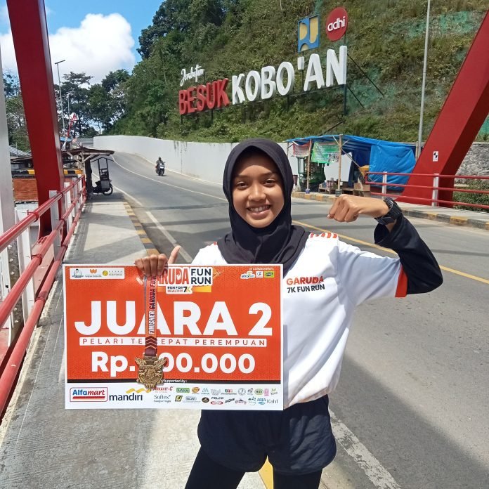Fauziyyah Putri Cahya Wijaya, Siswi MTsN 1 Lumajang, Raih Juara 2 di Ajang Garuda Fun Run di Wajak, Malang.