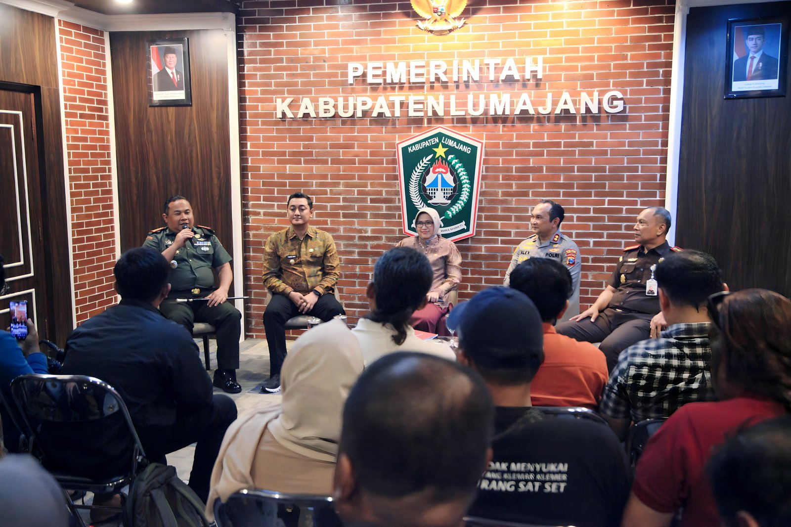 Lumajang, Forum Koordinasi Pimpinan Daerah (Forkopimda) Kabupaten Lumajang  melakukan silaturahmi bersama insan pers se-Kabupaten Lumajang, Kamis (12/6/2025), bertempat di Ruang Mahameru Kantor Bupati Lumajang. Kegiatan tersebut menjadi momen strategis dalam mempererat hubungan kemitraan antara pemerintah daerah, TNI-Polri, serta media massa sebagai elemen penting pembangunan.