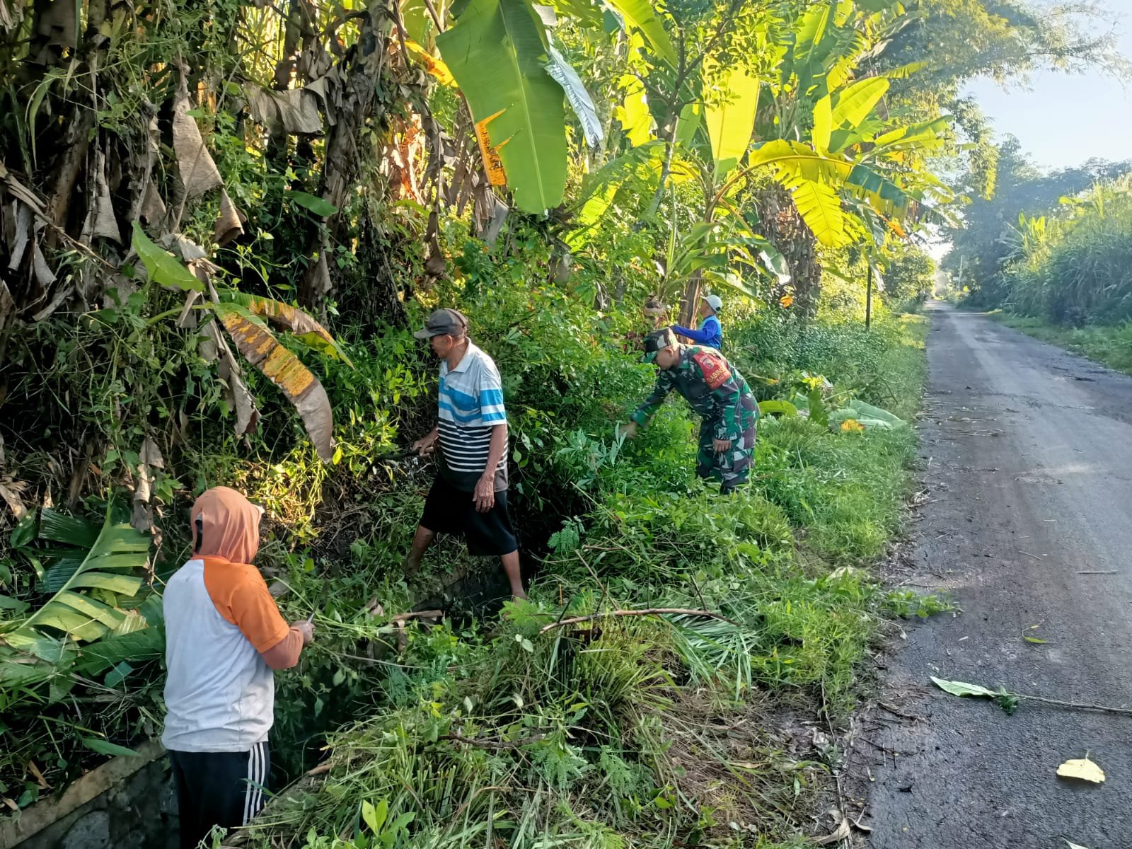 Lumajang, Guna menjaga kebersihan lingkungan serta mencegah terjadinya genangan air saat musim hujan, Babinsa Kalisemut Koramil 0821-20/Padang, Serda Hendrik, bersama warga setempat melaksanakan kegiatan kerja bakti pembersihan selokan di sepanjang jalan Dusun Kancu RT 006 RW 002 Desa Kalisemut, Kecamatan Padang, Kabupaten Lumajang, Jawa Timur, pada Senin (4/8/2025).