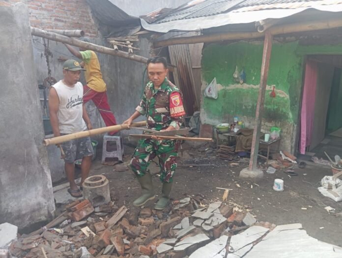 Lumajang, Semangat kebersamaan kembali terlihat. Babinsa Tukum Koramil 0821-15/Tekung, Serda Haeruddin, bersama warga setempat melaksanakan kerja bakti renovasi rumah milik Sahal, warga kurang mampu di RT 031 RW 009 Dusun Munder, Desa Tukum, Kecamatan Tekung, Kabupaten Lumajang, Selasa (25/11/2025).