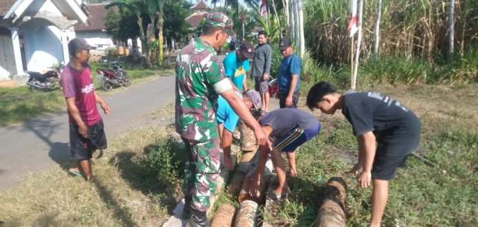 Lumajang, Babinsa Karanganom, Koramil 0821-17/Pasrujambe Sertu Bejo Utomo bersama warga Dusun Tambakrejo, bergotong royong melaksanakan kerja bakti pembersihan dan pemotongan ranting pohon di sepanjang jalan Dusun Tambakrejo Kulon, Desa Karanganom, Kecamatan Pasrujambe, Kabupaten Lumajang, Jawa Timur, pada Minggu (1/9/2024).