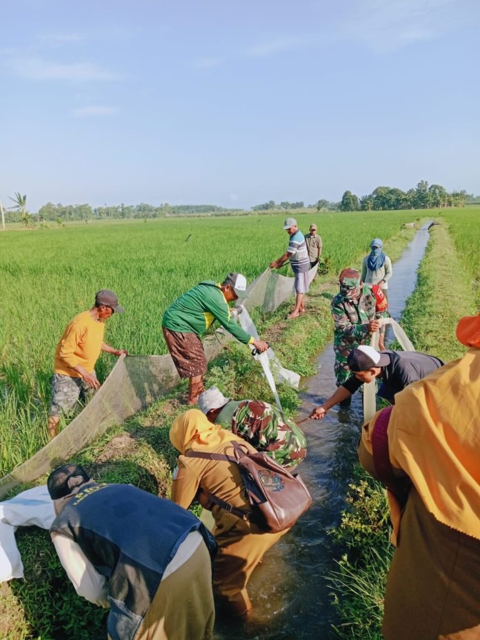 Lumajang, Dalam upaya menjaga ketahanan pangan dan melindungi tanaman petani dari serangan hama, Babinsa Krai Koramil 0821-11/Yosowilangun, Serka Sugeng Agus Wiyono, mendampingi Petugas Penyuluh Lapangan (PPL) dan kelompok tani melaksanakan kegiatan gropyok tikus di lahan pertanian milik Poktan Harapan Mulyo Dusun Kebonan, Desa Krai, Kecamatan Yosowilangun, Kabupaten Lumajang, Jawa Timur, Kamis (31/7/2025).