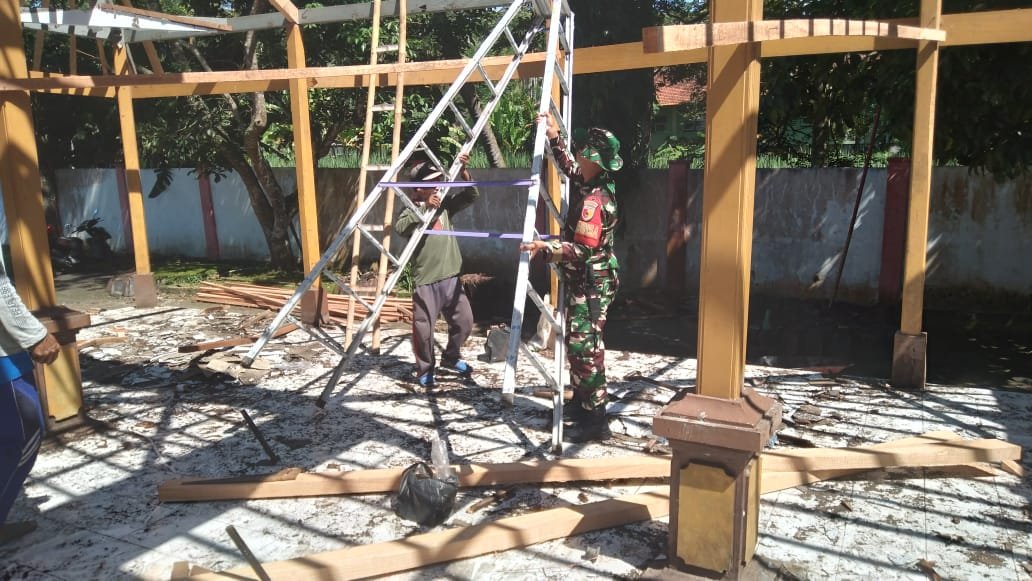 Lumajang, Dalam semangat gotong royong dan kebersamaan, Babinsa Tegalrandu Koramil 0821-05/Klakah, Serda Muhaimin, bersama perangkat desa dan warga setempat melaksanakan kegiatan karya bakti renovasi Pendopo Balai Desa Tegalrandu. Kecamatan Klakah, Kabupaten Lumajang, Jawa Timur, pada Senin (30/12/2024).