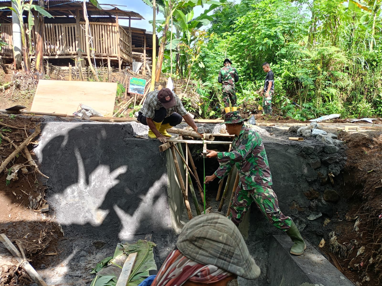 Serma Edy menjelaskan bahwa pembangunan tersebut merupakan bagian dari upaya TMMD dalam membantu masyarakat desa mendapatkan akses infrastruktur yang lebih baik.
