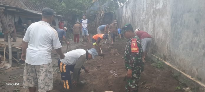 Lumajang, Dalam semangat kebersamaan dan gotong royong, warga Desa Pulo bersama Babinsa Desa Pulo Koramil 0821-10/Tempeh, Serda Andrianto, bersama warga melaksanakan kegiatan kerja bakti pembuatan jalan menuju Pemakaman Umum Dusun Gentengsari RT 006 RW 012 Desa Pulo, Kecamatan Tempeh, Kabupaten Lumajang Jawa Timur pada Rabu (28/8/2024).