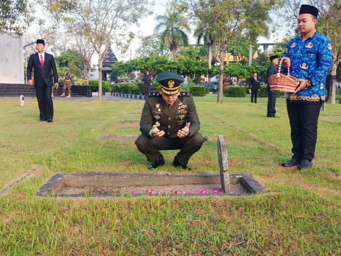 Lumajang, Kasdim 0821/Lumajang Mayor Inf Aditya Kurnia Rahman melaksanakan upacara ziarah Dalam rangka memperingati Hari Kebangkitan Nasional ke-116 bertempat di Taman Makam Pahlawan (TMP) Kusuma Bangsa Kabupaten Lumajang, Senin (20/5/2024).