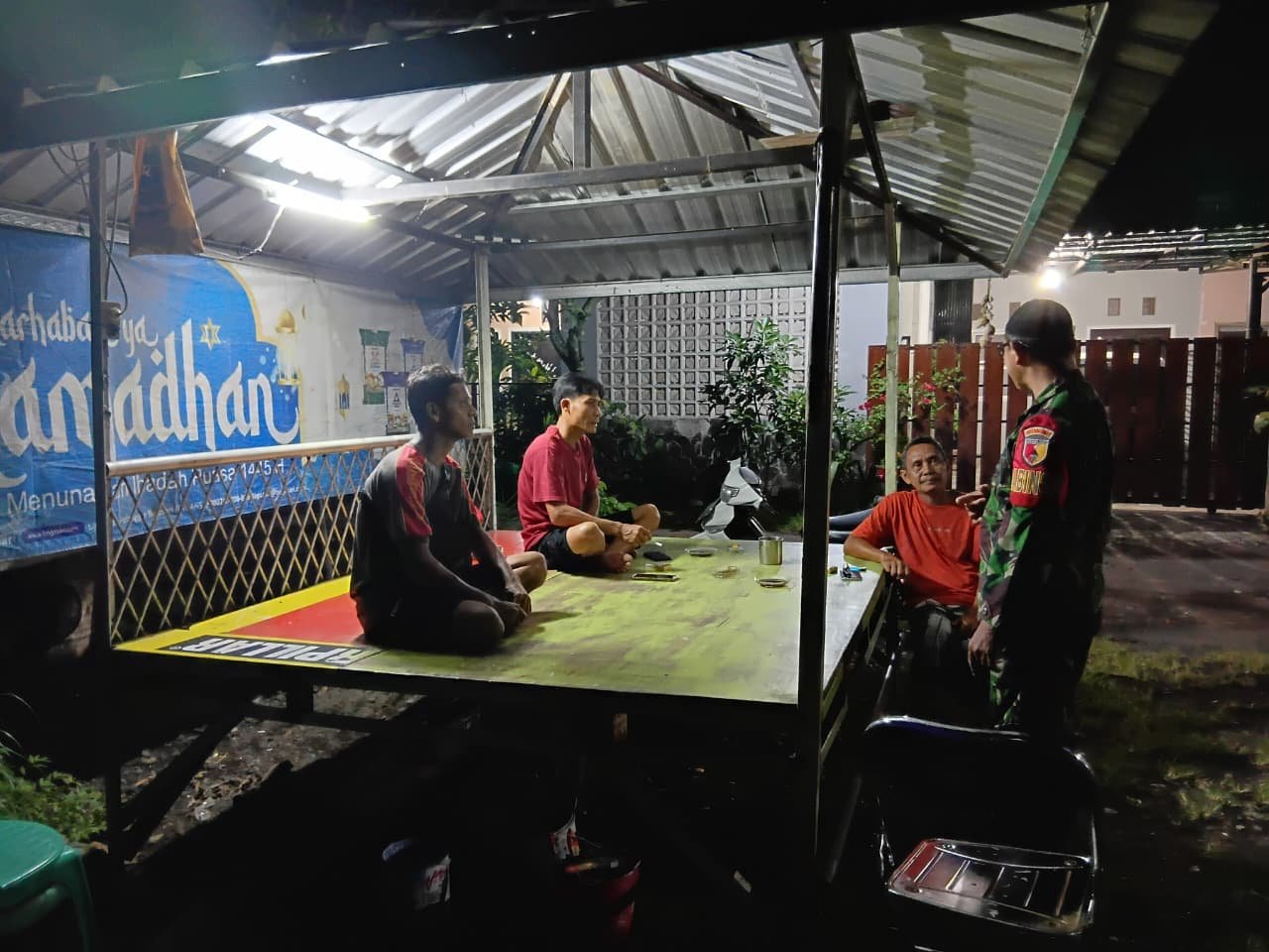 Kegiatan patroli tersebut dilakukan sebagai upaya untuk meningkatkan kewaspadaan serta memastikan kondisi wilayah tetap aman dan kondusif, terutama pada malam hari. Dalam kesempatan tersebut, Babinsa juga berdialog langsung dengan warga yang sedang melaksanakan ronda malam guna memberikan motivasi agar tetap aktif menjaga keamanan lingkungan.