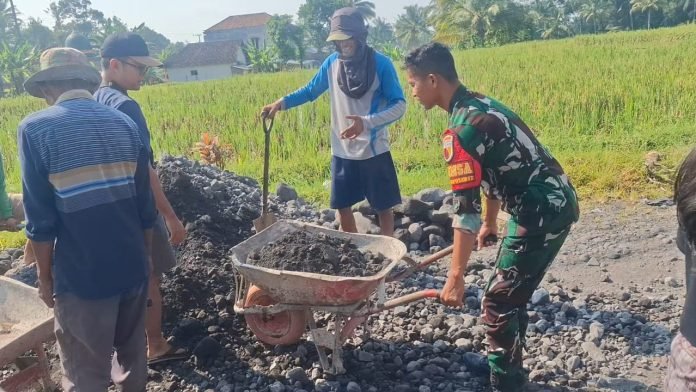Lumajang, Semangat kebersamaan dan gotong royong kembali ditunjukkan Babinsa Kloposawit Koramil 0821-09/Candipuro, Serda Moh. Dedik Indra Irawan, yang melaksanakan kerja bakti bersama warga memperbaiki jalan desa sepanjang 825 meter di Dusun Selorejo RT 001 RW 004, Desa Kloposawit, Kecamatan Candipuro, Kabupaten Lumajang, Jawa Timur. Sabtu (28/6/2025)