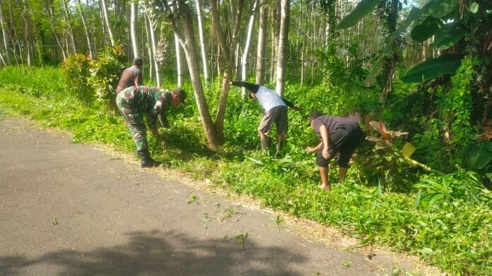 Lumajang – Wujud kepedulian terhadap kebersihan dan kenyamanan lingkungan jalan Dusun. Babinsa Selok Anyar Koramil 0821-08/Pasirian, Sertu Aris Setyardi, bersama warga melaksanakan kegiatan kerja bakti pembersihan pinggir jalan di Dusun Krajan RT 016 RW 004 Desa Selok Anyar, Kecamatan Pasirian, Kabupaten Lumajang, Jawa Timur, pada Selasa (24/2/2026).