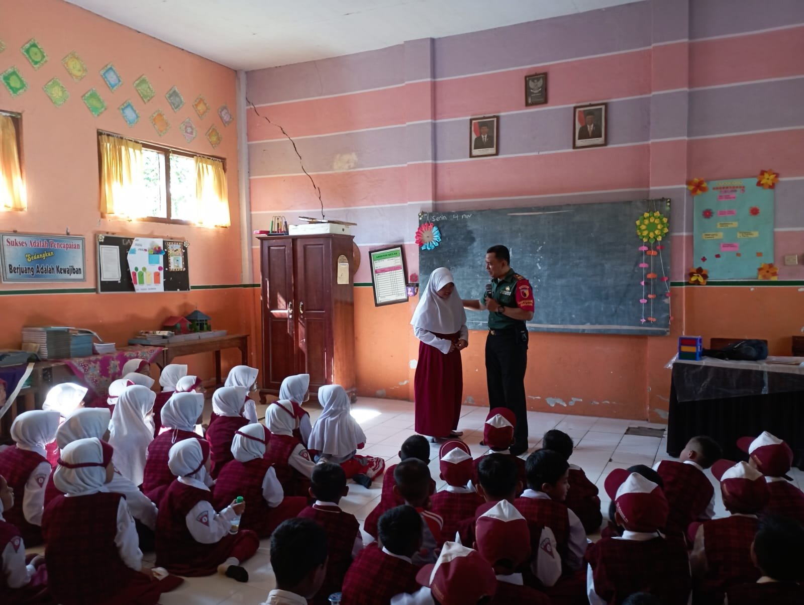 Lumajang – Dalam upaya membentuk generasi muda yang berkarakter dan berjiwa nasionalisme, Danposramil 0821-05/Kedungjajang, Peltu Cahyo Purnomo Wicaksono, melaksanakan kegiatan Wawasan Kebangsaan (Wasbang) kepada siswa-siswi SD Negeri Krasak 01, Kecamatan Kedungjajang, Kabupaten Lumajang, Jawa Timur, pada Selasa (5/11/2024).