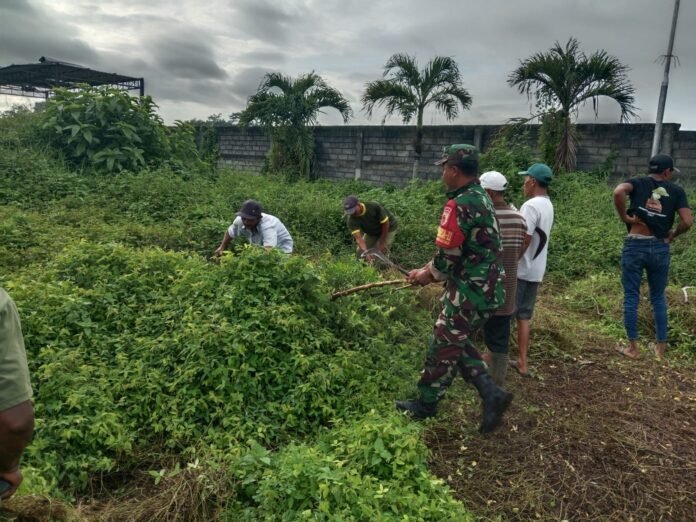 Lumajang, Dalam semangat kebersamaan dan menjaga kebersihan lingkungan, Babinsa Karanganyar Koramil 0821-11/Yosowilangun, Sertu Taufiq Abdul Lukito, bersama warga melaksanakan kerja bakti pembersihan lapangan Dusun Karangsari RT 002 RW 002, Desa Karanganyar, Kecamatan Yosowilangun, Kabupaten Lumajang, Jawa Timur, Rabu (3/12/2025).