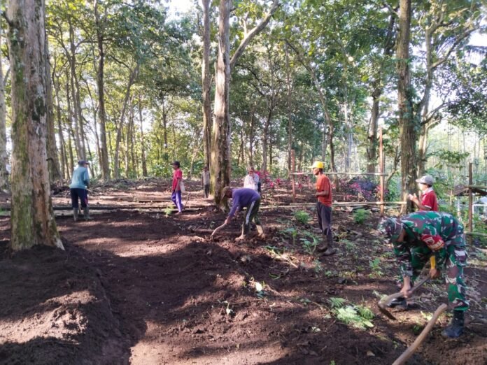 Lumajang – Wujud kepedulian terhadap kebersihan lingkungan sekaligus dukungan terhadap pengembangan potensi ekonomi desa, Babinsa Kenongo Koramil 0821-04/Gucialit Serda Moch. Agus Arifin bersama Pemerintah Desa dan warga melaksanakan kegiatan kerja bakti pembersihan Rest Area Kopi Jatian Kenongo, yang berlokasi di Dusun Margodadi, Desa Kenongo, Kecamatan Gucialit, Kabupaten Lumajang, Jawa Timur, pada Rabu (11/2/2026).