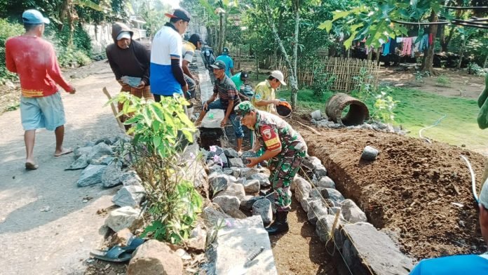 Lumajang, Dalam upaya mengurangi genangan air saat musim hujan dan mempererat hubungan sosial antar warga, pemerintah desa, dan TNI, warga Dusun Curah Lengkong RT 020 RW 007 Desa Curahpetung, Kecamatan Kedungjajang, Kabupaten Lumajang menggelar kerja bakti pembangunan saluran drainase pada Selasa (2/7/2024).