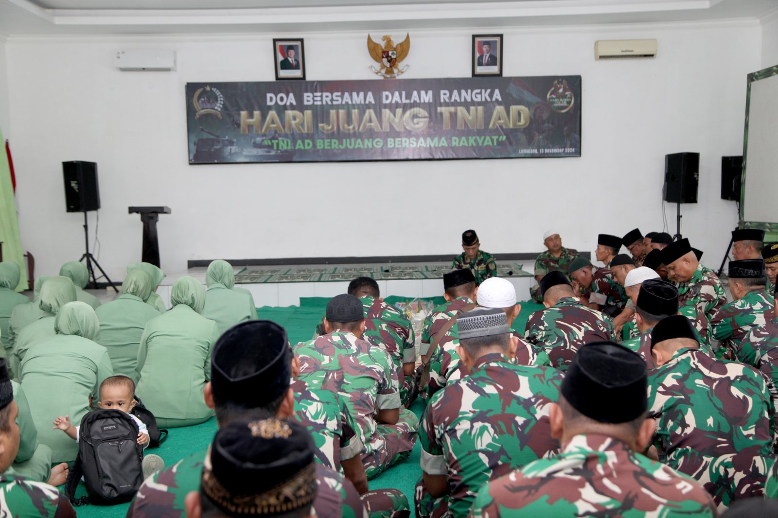Lumajang, Kodim 0821 Lumajang menggelar acara Doa Syukur dalam rangka memperingati Hari Juang TNI AD Tahun 2024 di Aula Raden Wijaya, Jumat (13/12/2024). Kegiatan ini dihadiri oleh jajaran perwira, anggota TNI, Persit KCK Cabang XXXV Lumajang.