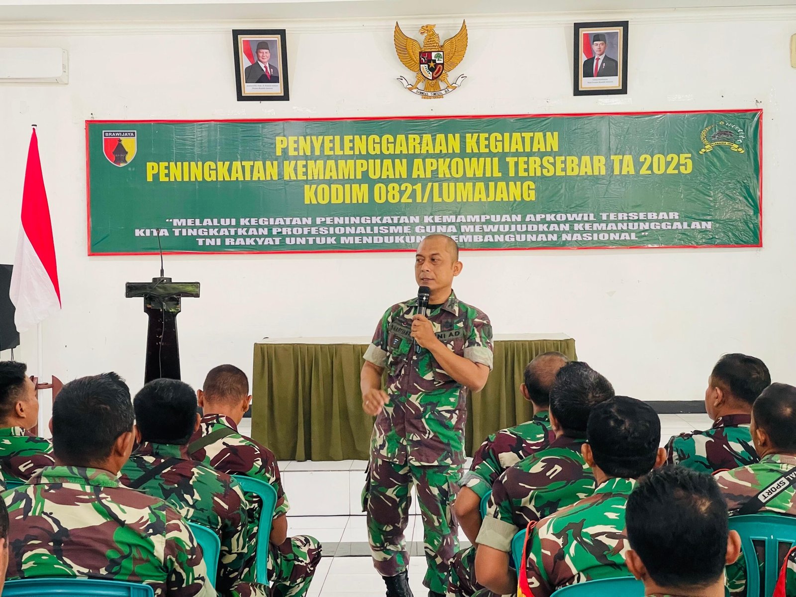 Lumajang — Dalam rangka meningkatkan kemampuan aparat kewilayahan serta mendukung suksesnya pembangunan di wilayah, Kodim 0821/Lumajang melaksanakan Kegiatan Peningkatan Kemampuan (Katpuan) Apkowil Tersebar TA 2025 yang digelar di Aula Kodim 0821/Lumajang, Jumat (19/12/2025).