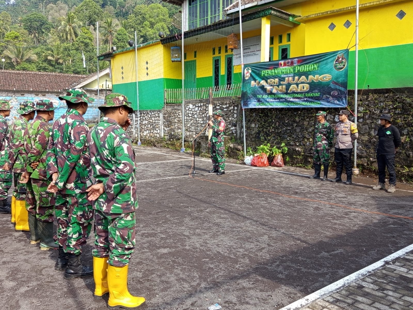 Lumajang, Dalam rangka memperingati Hari Juang TNI AD Tahun 2024, Kodim 0821/Lumajang melaksanakan kegiatan penanaman pohon di Desa Tamanayu, Kecamatan Pronojiwo, Kabupaten Lumajang, Jawa Timur, pada Sabtu (14/12/2024).