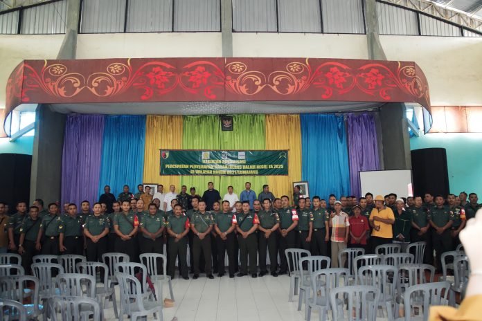 Lumajang – Dalam upaya mendukung ketahanan pangan nasional, Kodim 0821/Lumajang menggelar sosialisasi percepatan penyerapan gabah dan beras Tahun Anggaran 2025. Kegiatan tersebut berlangsung di Gedung Guru Tempeh, Kabupaten Lumajang, dengan menghadirkan berbagai pemangku kepentingan di sektor pertanian dan pangan, Rabu (26/2/2025)