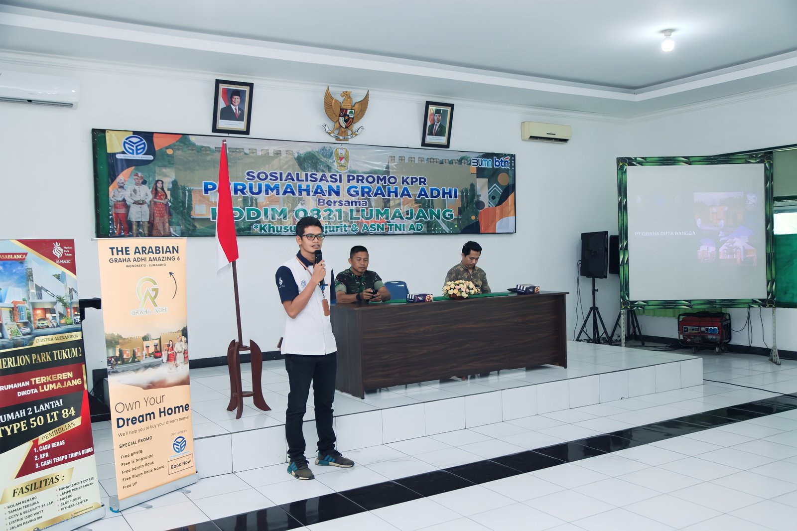Lumajang, Kodim 0821 Lumajang kembali menunjukkan kepeduliannya terhadap kesejahteraan prajurit dan keluarganya, dengan menggelar kegiatan sosialisasi promo perumahan dari PT Graha Duta Bangsa, bertempat di Aula Raden Wijaya Kodim 0821 Lumajang, Selasa (24/12/2024).